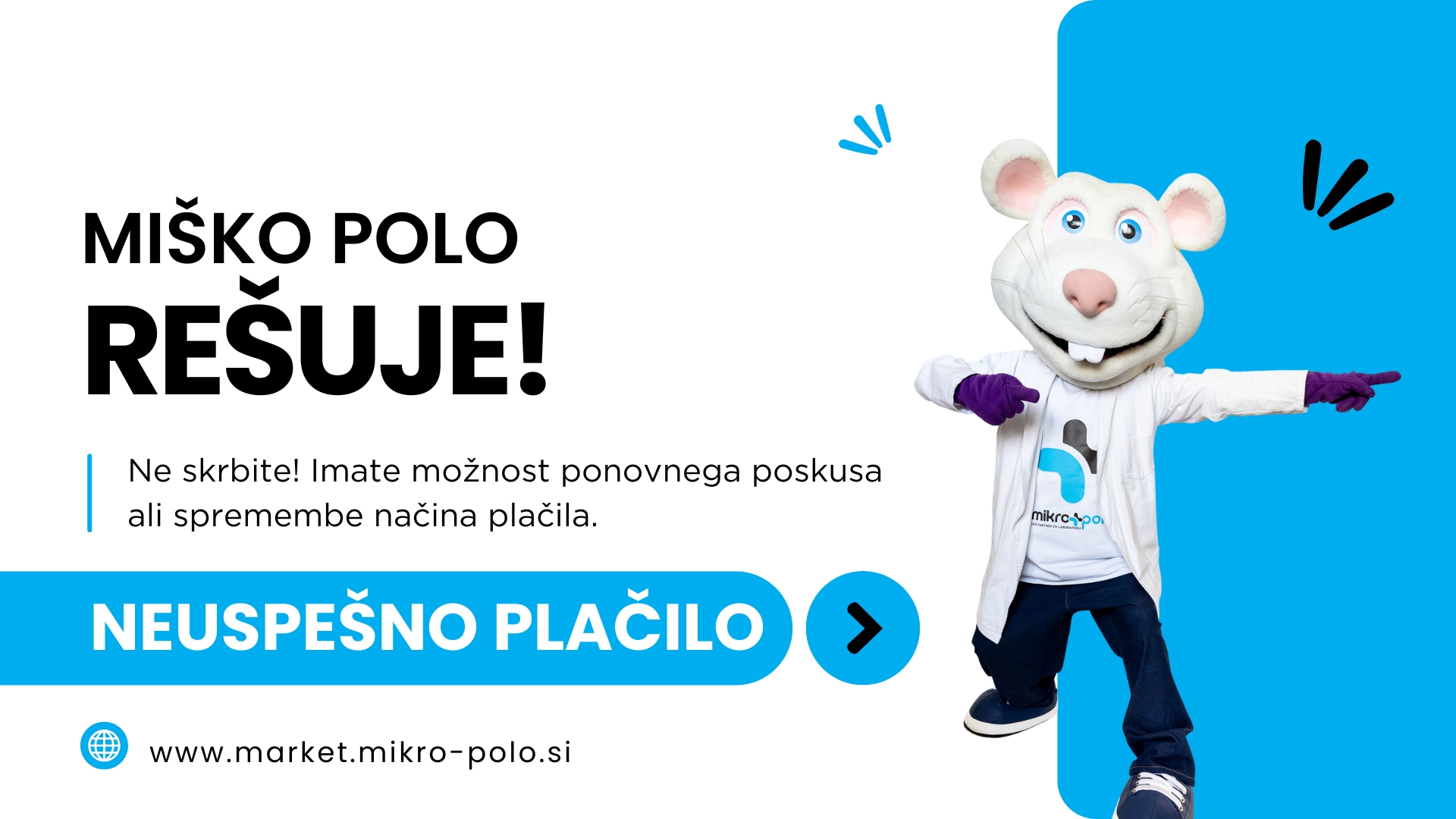 Ne skrbite! Imate možnost ponovnega poskusa ali spremembe načina plačila.