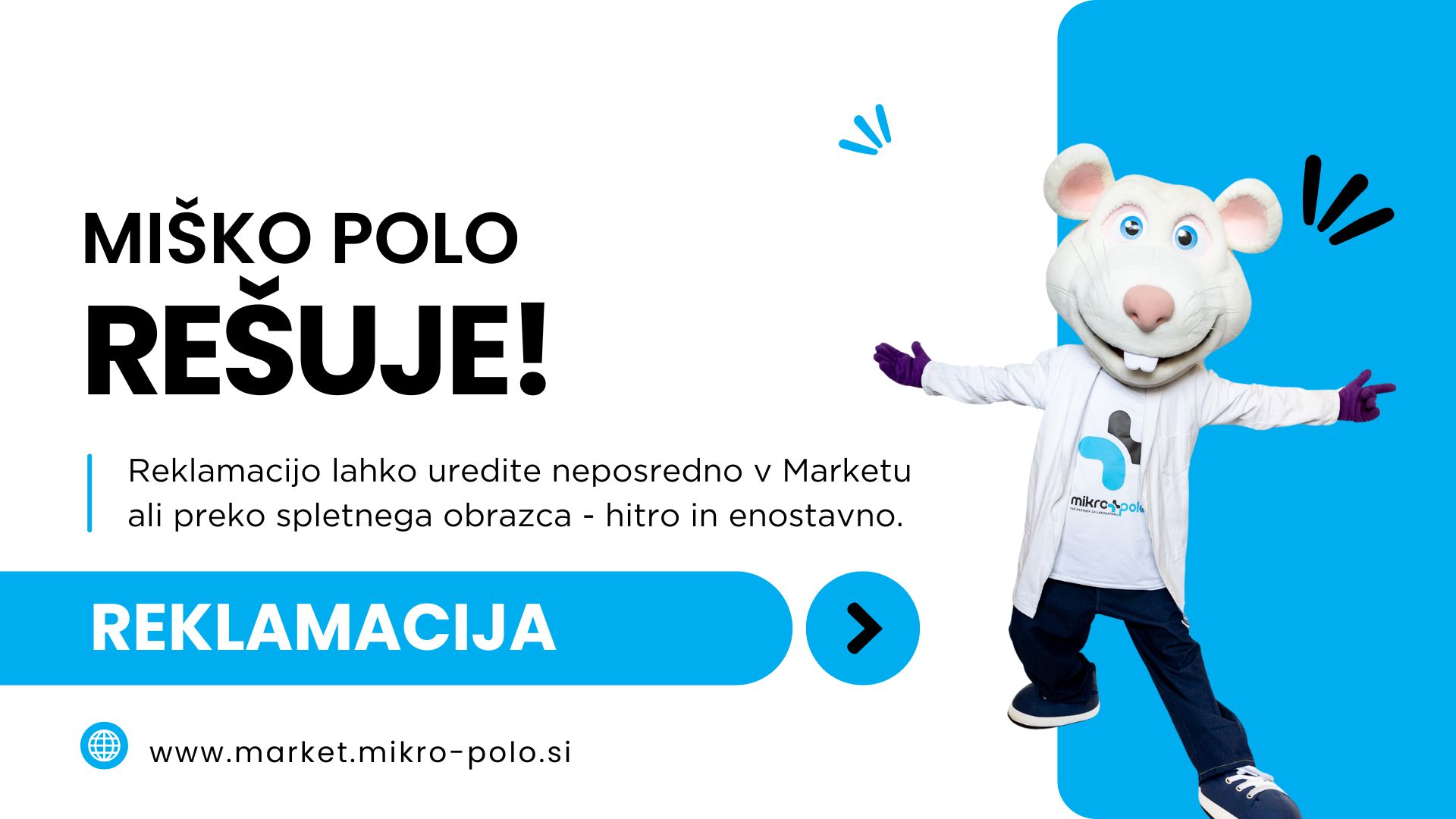 ✔ V primeru poškodovane pošiljke ali težave z blagom izpolnite reklamacijski zapisnik. ✔ Pošljite izpolnjen obrazec na reklamacije@mikro-polo.si. ✔ O vseh nadaljnjih korakih boste obveščeni prek e-pošte. ✔ Pošiljk z odkupnino ne sprejemamo.